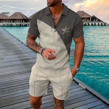 Grey Contrast Color Short Sleeve Polo Shirt And Shorts Co-Ord – DESTINY