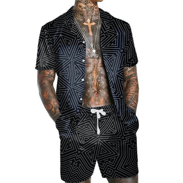 Men's Hawaiian Print Short Sleeve Shirt Set 19540089L – DESTINY
