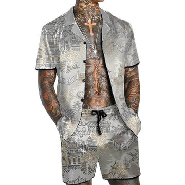 MEN'S HAWAIIAN SHORT SLEEVE SHIRT SHORT SET 01858146YM – DESTINY