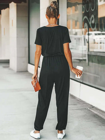 Dierefined, light waist and short sleeves and the wide, flowing trouser legs of the jumpsuit give you a flattering silhouette. This jumpsuit is a fashionable garment that is ideal for warm weather and will keep you fresh all day long.